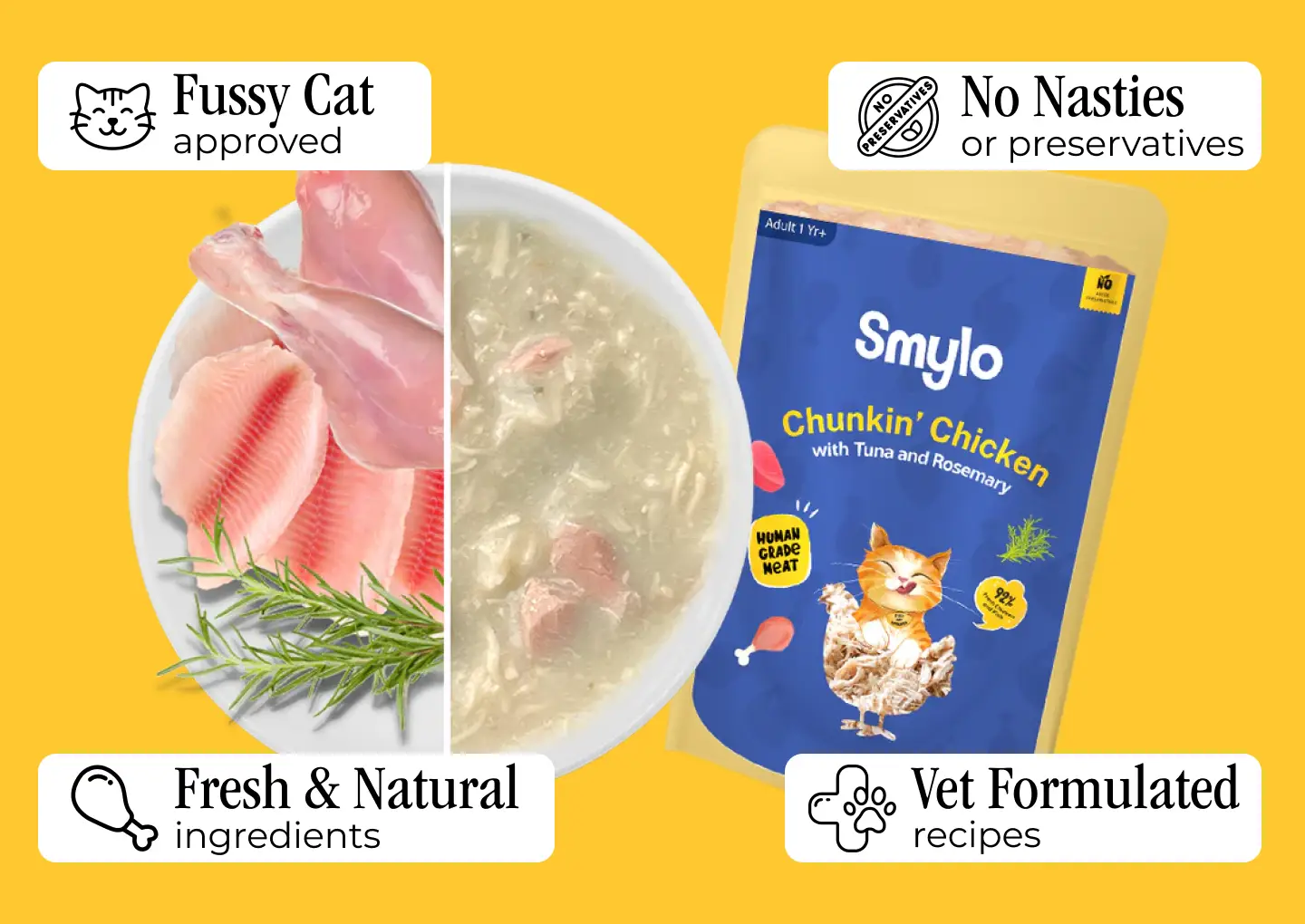 Smylo is an Indian pet care brand dedicated to redefining feline nutrition through high-quality, scientifically formulated cat food. Positioned at the intersection of health and convenience, Smylo focuses on delivering "clean-label" recipes that prioritize real ingredients over fillers.