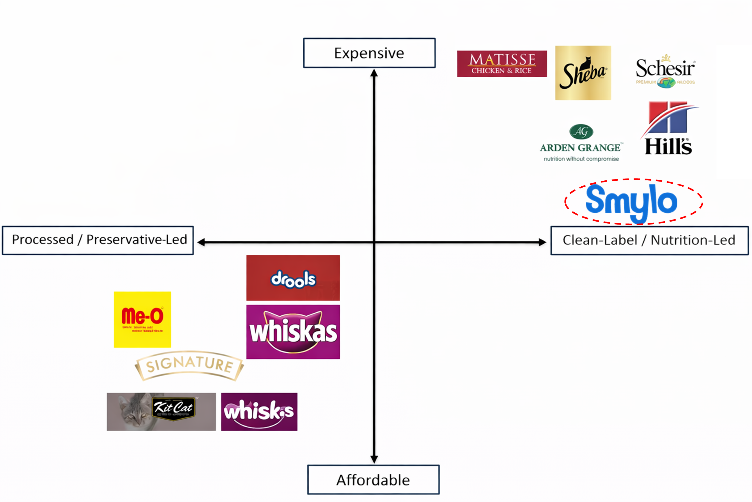 The INR 300 to 400 per kg segment remains unaddressed. This is where the premiumising cat parent sits: informed enough to move beyond mass products, but unwilling to rely on premium brands for every meal. This is where category growth will concentrate. And this is the space Smylo is built to own.