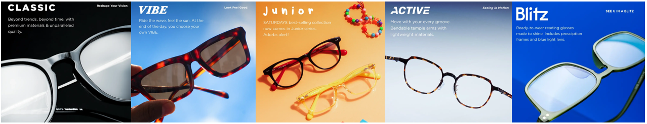Beyond physical retail, SATURDAYS has expanded its product range as well. What began as a single core collection - Classic, has expanded into four new collections: Vibe, a stylish and affordable line; Junior, designed for children; Active, tailored for sports and active lifestyles; and most recently, Blitz, a modern take on reading glasses. These additions have broadened SATURDAYS' appeal, allowing the company to serve a wider spectrum of customers while staying true to its core ethos of quality and design.